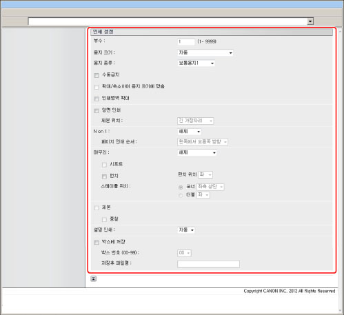 이 설정은 페이지 또는 복사본에서 인쇄할지 여부를 지정합니다.