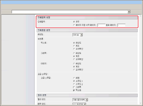 이 설정은 페이지 또는 복사본에서 인쇄할지를 지정합니다.