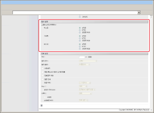 설정은 텍스트, 그래픽 및 이미지 데이터에 대해 개별적으로 설정될 수 있습니다.