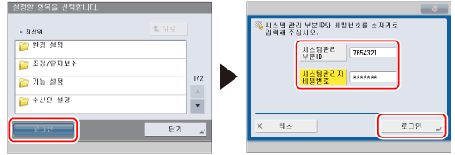 [시스템관리자 비밀번호] → [비밀번호]를 누르고 →