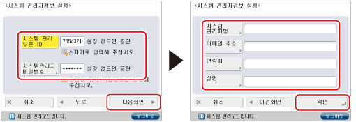 [시스템 관리자명]을 누르고 → 시스템 관리자명을 입력한 다음 → [확인]을 누릅니다.
