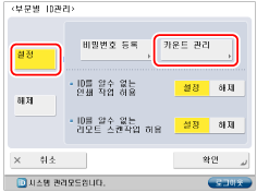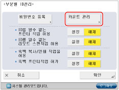 컨트롤 카드를 사용하는 경우 [상황확인/중지] → [소모품 확인] → [카운트 확인]을 눌러 카운트 면수를 확인할 수도 있습니다.