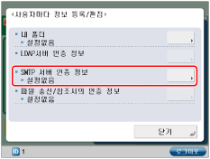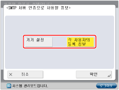 기기에 설정된 SMTP 서버 인증에 대한 정보를 사용합니다. (See "이메일/I-팩스 공통 통신 설정.") 추가 설정은 일부 사용자에게만 필요합니다.