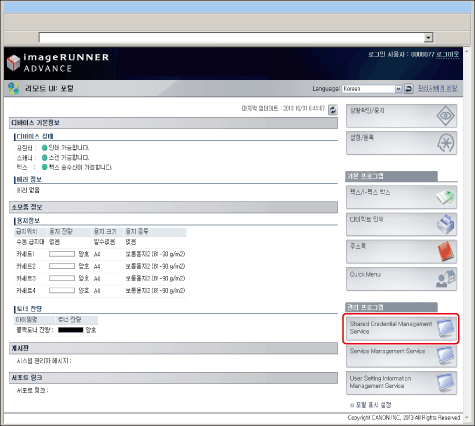사용 중인 로그인 서비스나 다른 서비스에서 통합 인증을 지원하는지 여부는 가까운 공인 대리점에 문의하십시오.