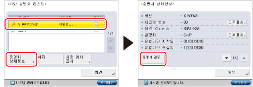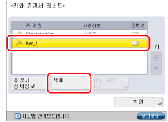 (무효화)가 표시된 경우 키 페어가 손상되었거나 사용할 수 없습니다. 이 경우에는 키 페어를 삭제하고 새 키 페어를 등록하십시오. ("키 페어와 서버 인증서 생성." 또는 "컴퓨터에서 설치된 키 페어 파일과 서버 인증서 파일 등록."을 참고하십시오).|