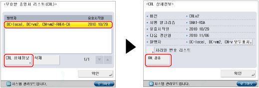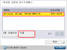 증명서 무효화 리스트를 설치하는 방법에 대한 자세한 내용은 "증명서 파일 설치."를 참고하십시오.