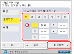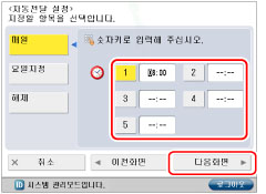 - (숫자 키)를 사용하여 시작 시간을 입력하고 → [다음화면]을 누릅니다.