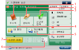 [기타 기능]에서 모드로 몇개의 단축키를 표시합니다. [양면원고] 및 [원고방향]은 기본으로 표시됩니다. (See "단축키 지정.")