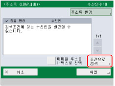 [주소록 변경]은 리모트 주소록 및 LDAP 서버를 둘 다 등록할 경우에만 나타납니다. LDAP 서버만 기기에 등록한 경우 [LDAP서버에]가 표시됩니다.