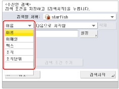 수신인을 이메일 주소 및 팩스 번호로 등록한 경우 검색 기준으로 팩스 번호를 입력하여 이메일 주소를 검색하거나 이메일 주소를 입력하여 팩스 번호를 검색할 수 있습니다.