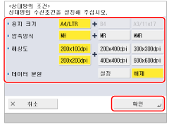 수신 기기의 사양에 따라 수신인 조건을 설정하십시오. 수신인 기기에서 지원되지 않는 조건을 설정하면 송신 에러가 발생할 수 있습니다.