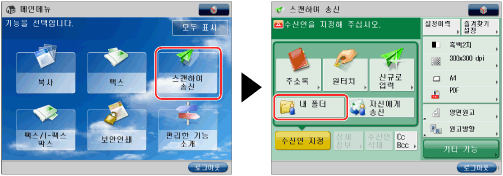 [스캔하여 송신] → [내 폴더]를 누릅니다.