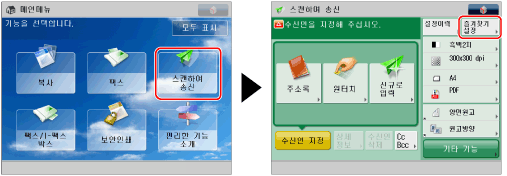 [스캔하여 송신] → [즐겨찾기 설정]을 누릅니다.