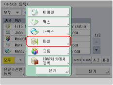 주소록 화면에서 [ㄱ], [ㄴㄷ] 및 [A~Z] 등과 같은 키를 누르면 이름에 대해 입력한 첫 번째 문자는 수신인 리스트를 정렬하는데 사용됩니다.