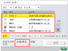 편집할 수신인을 선택하고 → [상세/편집]을 누릅니다.