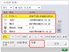 삭제할 수신인을 선택하고 → [삭제]를 누릅니다.