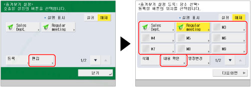 [편집] → 설정을 확인할 버튼을 선택하고 → [내용 확인]을 누릅니다.