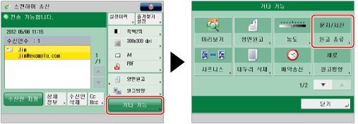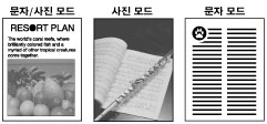 [흑백2치]가 컬러 모드로 선택되면 문자/사진 모드 또한 선택되었으므로 문자/사진 모드의 [레벨 조정] 설정은 사용할 수 없습니다.