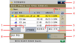 폴더에 저장된 파일을 삭제합니다. 한 번에 최대 32개 파일을 선택 및 삭제할 수 있습니다.