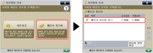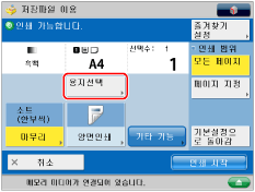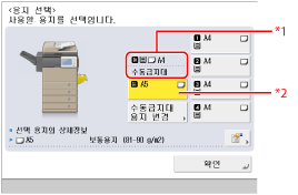 인쇄 대기 중인 예약 작업이 2개 이상인 경우, 예약된 작업에 지정된 최근 용지 크기/종류만 용지선택 화면과 일반 복사 기본 기능 화면에 나타납니다.