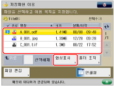 원하는 파일을 선택하고 → [화상표시]를 누릅니다.