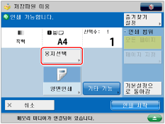 현재 작업에 수동 급지대에서 용지가 급지될 경우 [수동급지대 용지 변경]에서 다음 작업의 용지를 선택할 수 있습니다. (See "수동 급지대를 사용한 인쇄 작업 예약.")