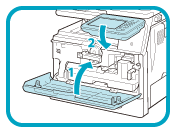 토너 카트리지 잠금 레버를 시계 반대 방향으로 돌려 레버의 화살표와 축이 서로 마주보게 하십시오.