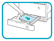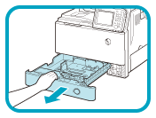 손잡이를 잡고 움직이지 않을 때까지 용지 카세트를 잡아 당깁니다.