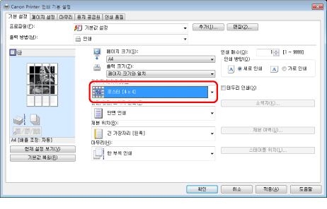 다음 조건에서 [포스터 인쇄]를 선택할 수 있습니다.