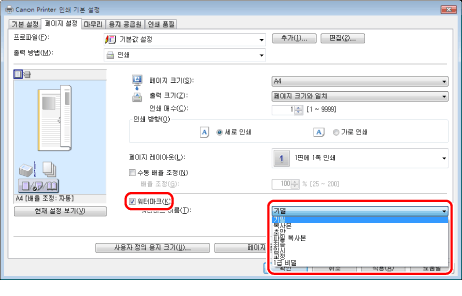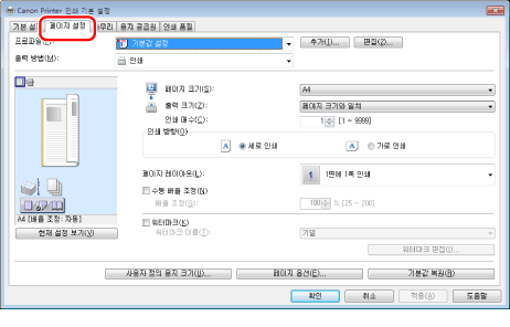 화면은 운영 체제와 프린터 드라이버의 종류 및 버전에 따라 다를 수 있습니다.