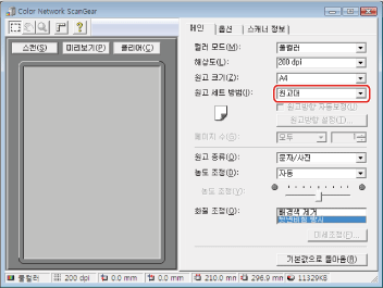 ] (종료)를 클릭하여 닫습니다.사용 가능한 설정 및 범위는 사용 중인 스캐너 모델에 따라 다릅니다.