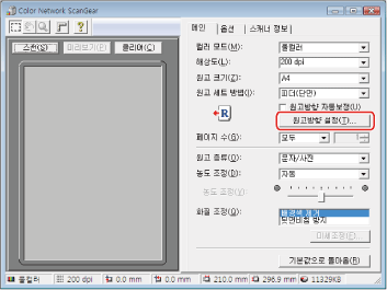 피더에서 스캔할 때 컴퓨터 모니터에서 문서를 올바른 방향으로 표시하도록 Network ScanGear를 설정할 수 있습니다.