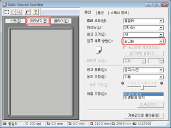 [자동] 또는 [원고혼재]를 [원고 크기]에서 선택한 경우