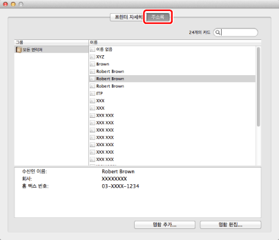 주소록 표시(Mac OS X 10.6 이상)