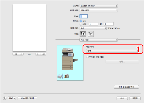 사용 가능한 설정은 운영 체제와 프린터 드라이버의 종류 및 버전에 따라 다를 수 있습니다.