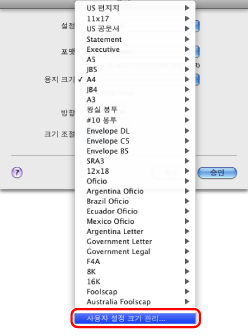 [용지 크기]에서 [사용자 설정 크기 관리]를 선택합니다.