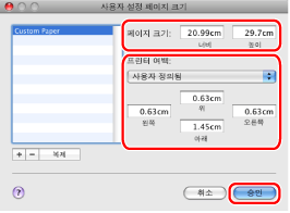 용지 크기와 여백을 설정하고 → [승인]을 클릭합니다.
