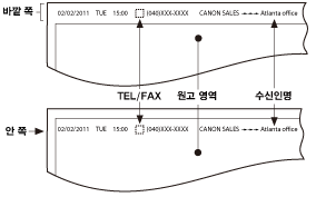 수신인 용지의 이미지 영역 외부에 발신원 기록 정보를 인쇄합니다.