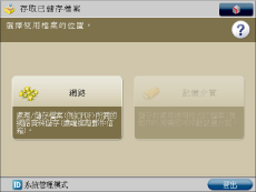若將[儲存位置顯示設定]中的<記憶介質>設定為「關閉」,不會顯示[記憶介質設定]。要使用[記憶介質設定],請將[記憶介質]設定為「開啟」。(See "儲存位置顯示設定.")