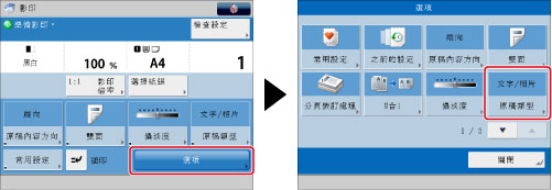 若原稿為投影片,則選擇原稿類型→將曝光調整到最適合於原稿的層級。