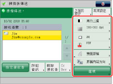 ︰電子郵件 ︰傳真 ︰網際網路傳真 ︰檔案 ︰群組 :密件副本 :副本 |