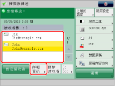 若從「本機通訊錄」或「遠端通訊錄」指定了接收者:
