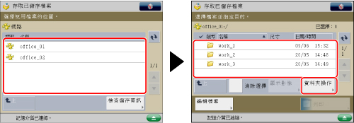 選擇所需的儲存位置→選擇所需的資料夾層級→按[資料夾操作]。