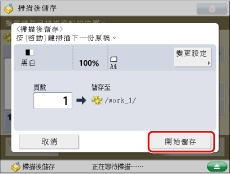 若顯示以下螢幕,最後一批原稿掃描結束後,請按[開始儲存]。