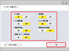 [環境設定](設定/登録)の[タイマー/電力設定]で[主電源ON時の高速起動]を「ON」にしている場合に、主電源を切ったとき(使用状況により高速起動されない場合は、ブザーは鳴りません。) |