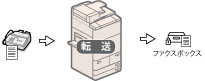 あらかじめ設定した条件に一致するファクス文書を、指定の宛先に、お好みの送信設定で転送できます。また、受信したファクス文書を他の機器に転送する「中継」や、転送先に任意のファクスボックスを指定する「親展」が可能です。タイマーを設定して転送設定が有効になる時間を指定することもできます。さらに、本製品では、条件に一致しなかったファクス文書の転送先も指定しておくことができるので、受信した文書の仕分け配信機能として利用できます。