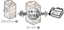 本製品が電話回線に接続されていなくても、リモートファクス機能を使いサーバー機を介することで、ファクスの送受信ができます。