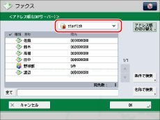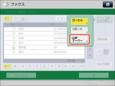 [アドレス帳の切り替え]は、リモートアドレス帳とLDAPサーバーが登録されているときに表示されます。LDAPサーバーのみが登録されているときは[LDAPサーバーへ]が表示されます。