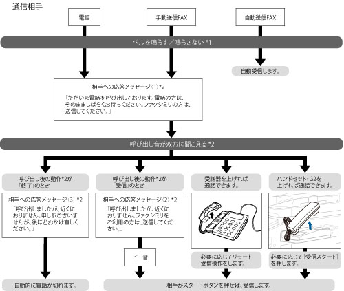 [受信モード選択]で[自動受信]を選択している場合の受信動作です。