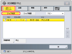 プリントを中止したジョブはプリントジョブ履歴の画面で「NG」と表示されます。